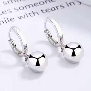 Silver Ball Dangle Huggie Earrings. 925 Sterling Silver. #1129