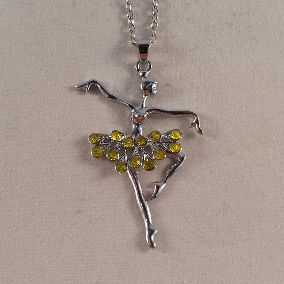 Beautiful classic design Ballerina Ballet Dancer chain necklace. Silver over alloy with yellow crystals on tutu. High polished shine, brand new, never been worn. Lead, nickel free. This gorgeous necklace sparkles.