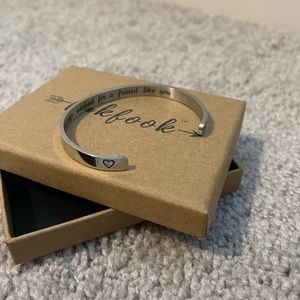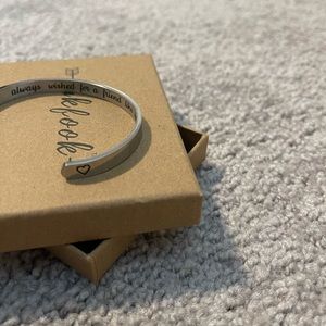 Silver Bangle, says “always wished for a friend like you” on the inside with two hearts on the ends never worn