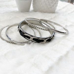 Silver Bangle Stackable Bracelet Set