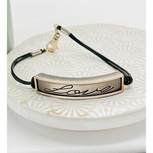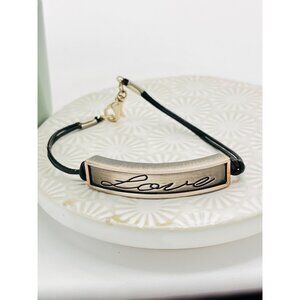 Silver Bar "Love" Charm Bracelet With 2 mm Black Leather Cord NEW