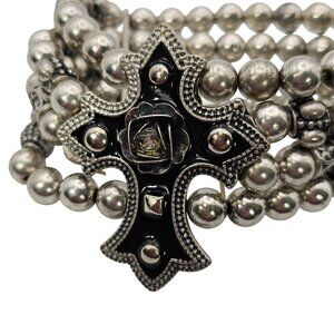 Silver Beaded Bracelet Multistrand Cross Faith Religious Grunge Rock Christian