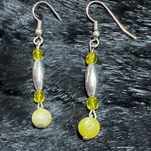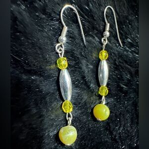 Elegant silver and yellow beaded earrings perfect for any occasion. Add a touch of color and shine to your outfit.
