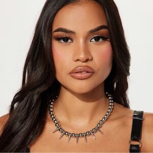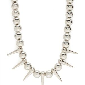 Silver Beaded Spiked Necklace Punk Gothic Retro