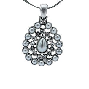 This Silver Beaded Corded Teardrop Necklace adds an elegant touch to any outfit. With its intricate beading and teardrop design, it's the perfect accessory for a special occasion or everyday wear.