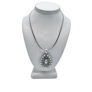 Silver Beaded Wire Corded Teardrop Necklace Elegant