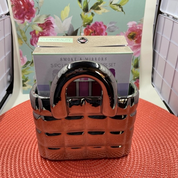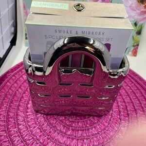 Discover elegance with the 5-piece beauty set. Encased in a chic silver basket, this set is perfect for enhancing your beauty routine.