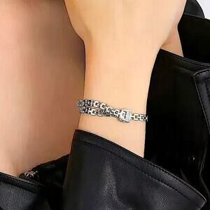 Stainless steel Silver Belt Buckle Bracelet Matching Ring Set, Minimalist, Zircon, Chain Link.