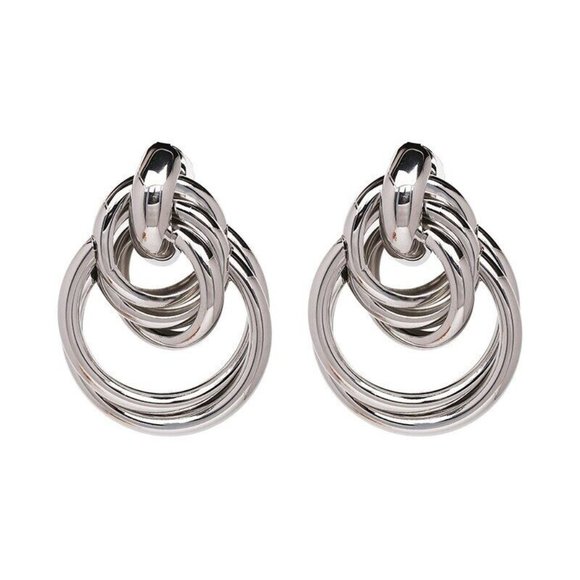 Silver Big Layered Swirl Hoop Statement Stud Earrings Party Gift