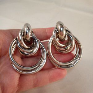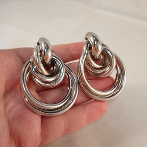 Beautifully crafted large layered swirl hoop statement stud earrings silver zinc alloy. Brand new, never been worn. Lead, nickel free. These earrings sparkle.