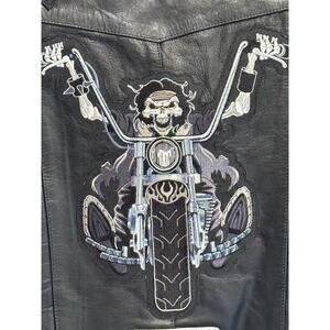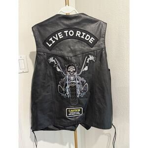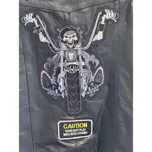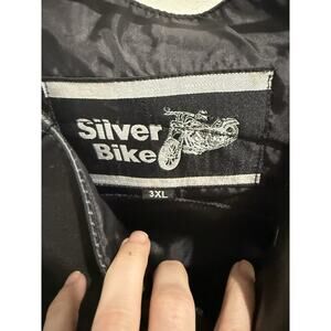 Silver Bike Leather Men's Vest, 3XL w/Pockets, Black Embroidered Patches