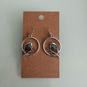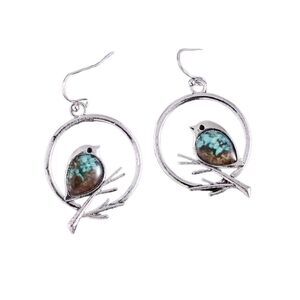 Elegant silver hoop earrings featuring a charming turquoise bird design. Perfect for adding a touch of nature-inspired beauty to any outfit.