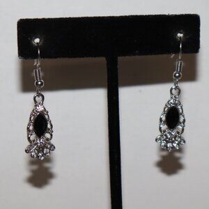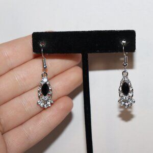 🖤 Silver & Black Gem Dangle Earrings – 1 5/8"