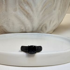 Silver Black Spinel Ring | Faceted Center Stone | Size 7