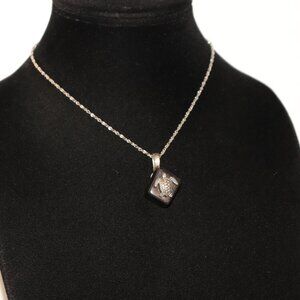 🖤 Black rectangular pendant with detailed silver turtle design ✨ Pendant measures approx. 1.25" tall—bold and symbolic 🔗 Silver-tone chain with small interlinked loops, approx. 15" length