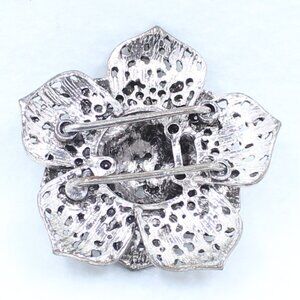 Silver Black and Clear Multi Level Flower Shaped Scarf or Bolo Slide