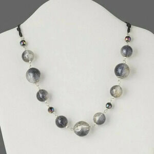 Silver Black and Iris Retro Metallic Drizzle Lucite and Glass Beads Necklace