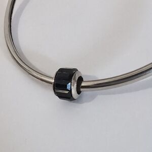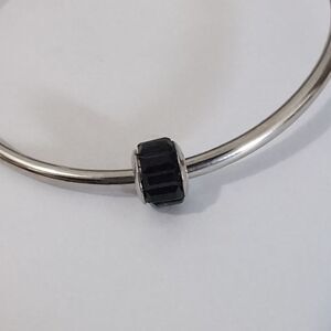 Silver Black Crystal Spacer Charm for Pandora Style Bracelet