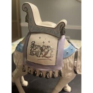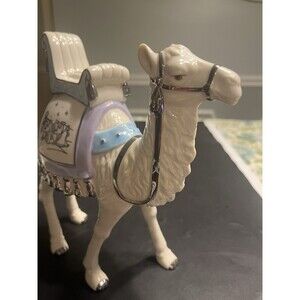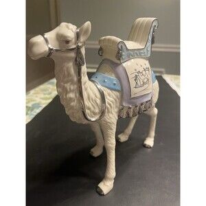 The Silver Blessings Christmas Nativity Faithful Camel 8" Tall Figurine is a beautifully crafted porcelain and ceramic figurine from the Hawthorne Village collection. This multicolored camel figurine is a part of the Silver Blessings Nativity set and is perfect for celebrating Christmas with a religious theme. Standing at 8 inches tall, this figurine is designed in the shape of an animal and is a lovely addition to any holiday display. The figurine is an original piece from 2004 and is a valuable collectible for those who appreciate faith-inspired Christmas decor.
