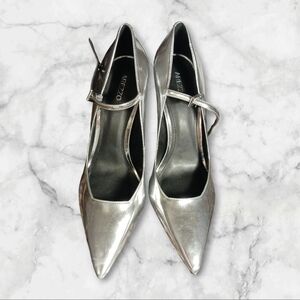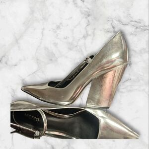Step out in style with these chic silver block heel pumps. Perfect for any occasion, these heels add a touch of elegance to your outfit.