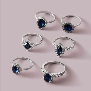 Silver Blue 6pc Rhinestone Geometric Midi Ring Set