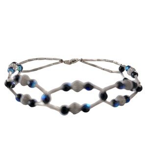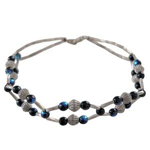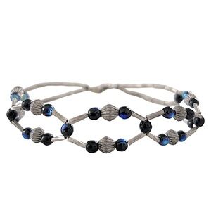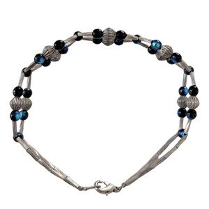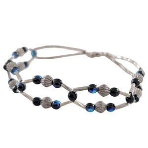 Elegant bracelet featuring silver and blue beads. Perfect for any occasion.
