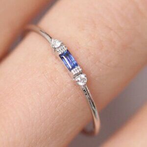 "Silver Blue Chic Rectangle Round Gems Dainty Ring for Women, VIP182
