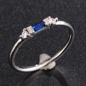 Silver Blue Chic Rectangle Round Gems Dainty Ring for Women, VIP182