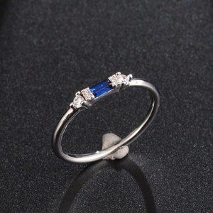 "Silver Blue Chic Rectangle Round Gems Dainty Ring for Women, VIP182