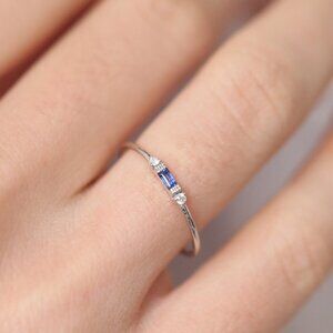 "Silver Blue Chic Rectangle Round Gems Dainty Ring for Women, VIP182