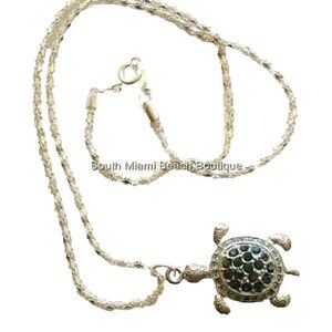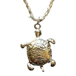 Silver Blue Crystal Sea Turtle Necklace Pendant Island Nautical Plated 17"