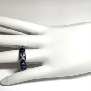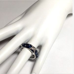 Silver Blue Enamel Ring Cubic Zirconia Size 9 10