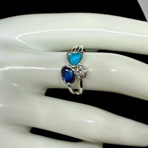 Silver & Blue Gemstone Cluster Ring – Size 7 – NWOT