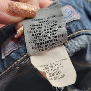 Silver Blue Jeans Size 29/30 with Back Pocket Embellishments