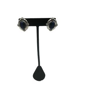 Elegant silver earrings featuring a striking blue oval stone. Perfect for adding a touch of sophistication to any outfit. Secure with comfortable post backings.