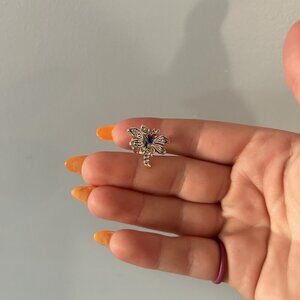 Silver Blue Red Dragonfly Pin Jewels Lapel Small Collector Jewelry Vintage