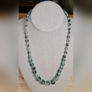 Silver Blue/Green Graduated Glass Beaded Necklace & Matching Stretch Bracelet