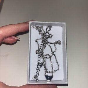 Has an “S” initial in a heart. Super cute and never worn, I just wanted it in gold and got the wrong color.