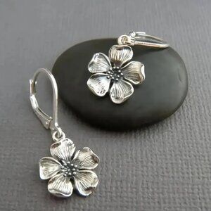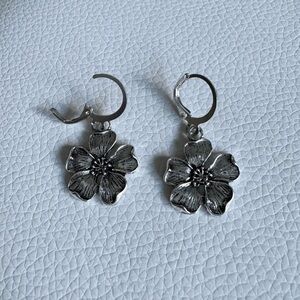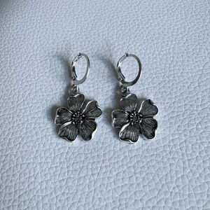 Silver Bohemian Vintage Floral Flower Drop Earrings New NWT
