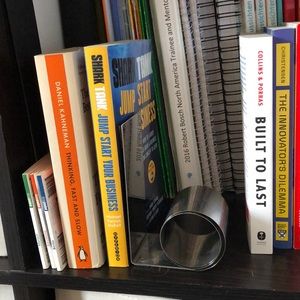 Cool simple silver book end that was given to my Grandpa since he volunteered at my aunts’ high school. Has a mid-century vide to it. See photos for measurements.