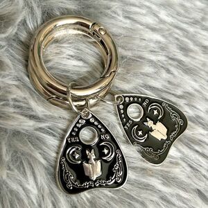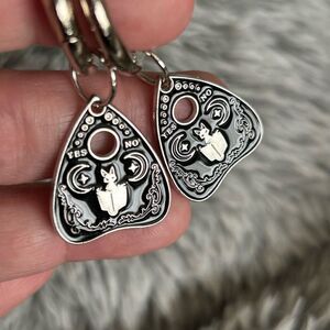Add some fun to your boots with these dangling silver tone metal and black enamel planchette charms.
