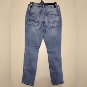 Silver Boyfriend Jeans Distressed With patches behind distressing holes. Western Glove Works on tag