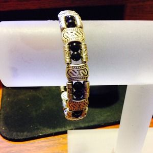 @glitter4u it is guaranteed not to turn. It is not stamped. Yes silver with black beads. I will get the length for you. Thank you so much for your interest. Please let me know if you would like to purchase with a discount.