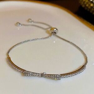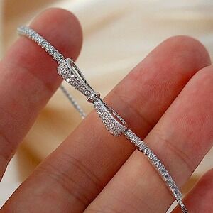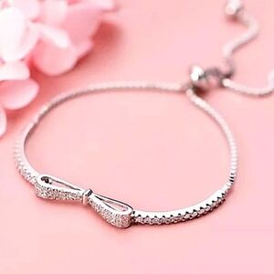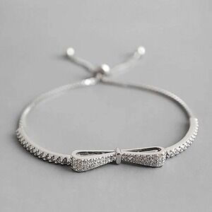 Silver Bracelet, Bow Tie Bracelet, Bowknot Bracelet, Cubic Zirconia, Anniversary