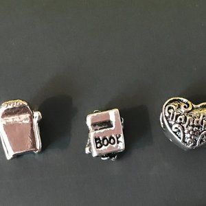 This adorable silver bracelet with three slide on charms is perfect gift for mom or grandmother! Or anyone who loves to read!