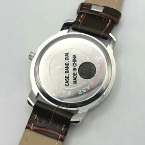 Silver & Brown Classic Watch. Fully functional with brand new batteries. Adjustable band fits 6 1/2 in wrist or near.