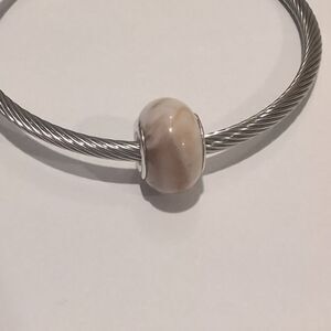 Silver Brown and White Blended Charm for Pandora Style Bracelet