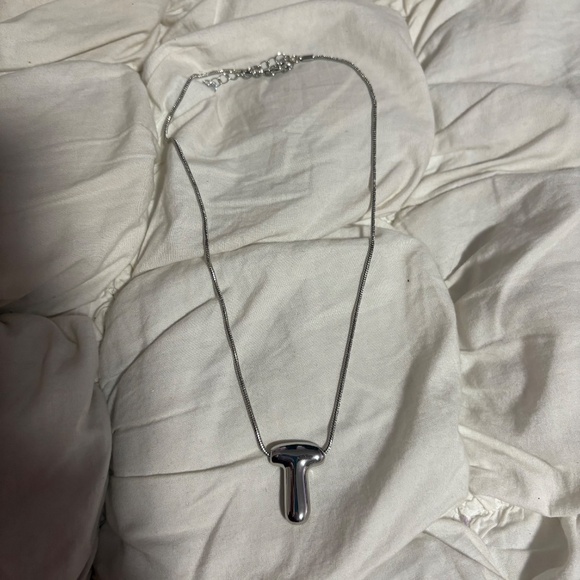🫧 Chunky Silver Initial 'T' Bubble Letter Necklace Y2K 🫧