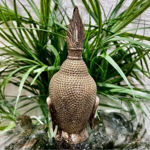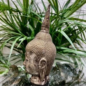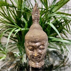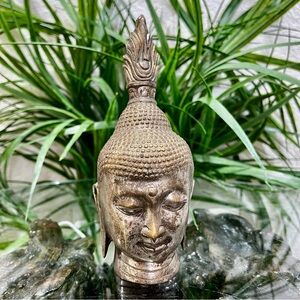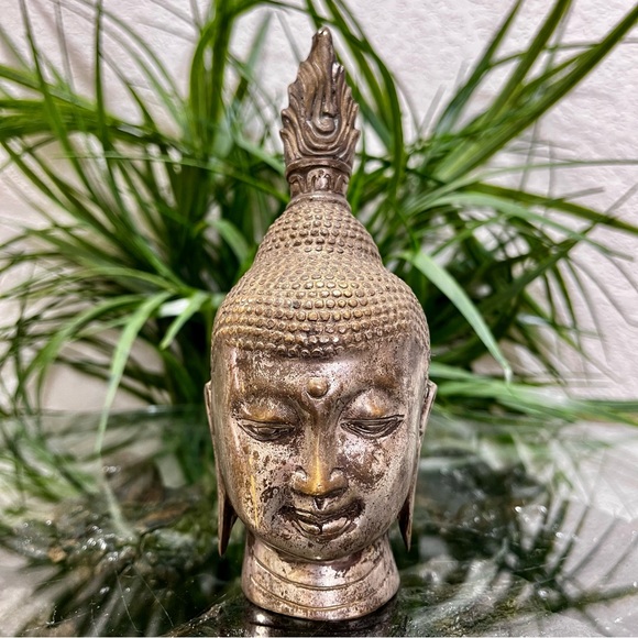 Silver Buddha Head Sculpture - Metal 7” Tall