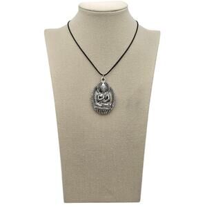 Silver Buddha Pendant Necklace on Black Cord Adjustable Spiritual Boho Jewelry